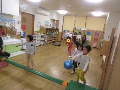 今日はお部屋で洗濯ばさみ遊びやドッチボールをして過ごしました。
