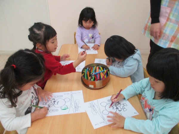 らっこ組の子どもたちは、塗り絵が大好きです(*^-^*)
