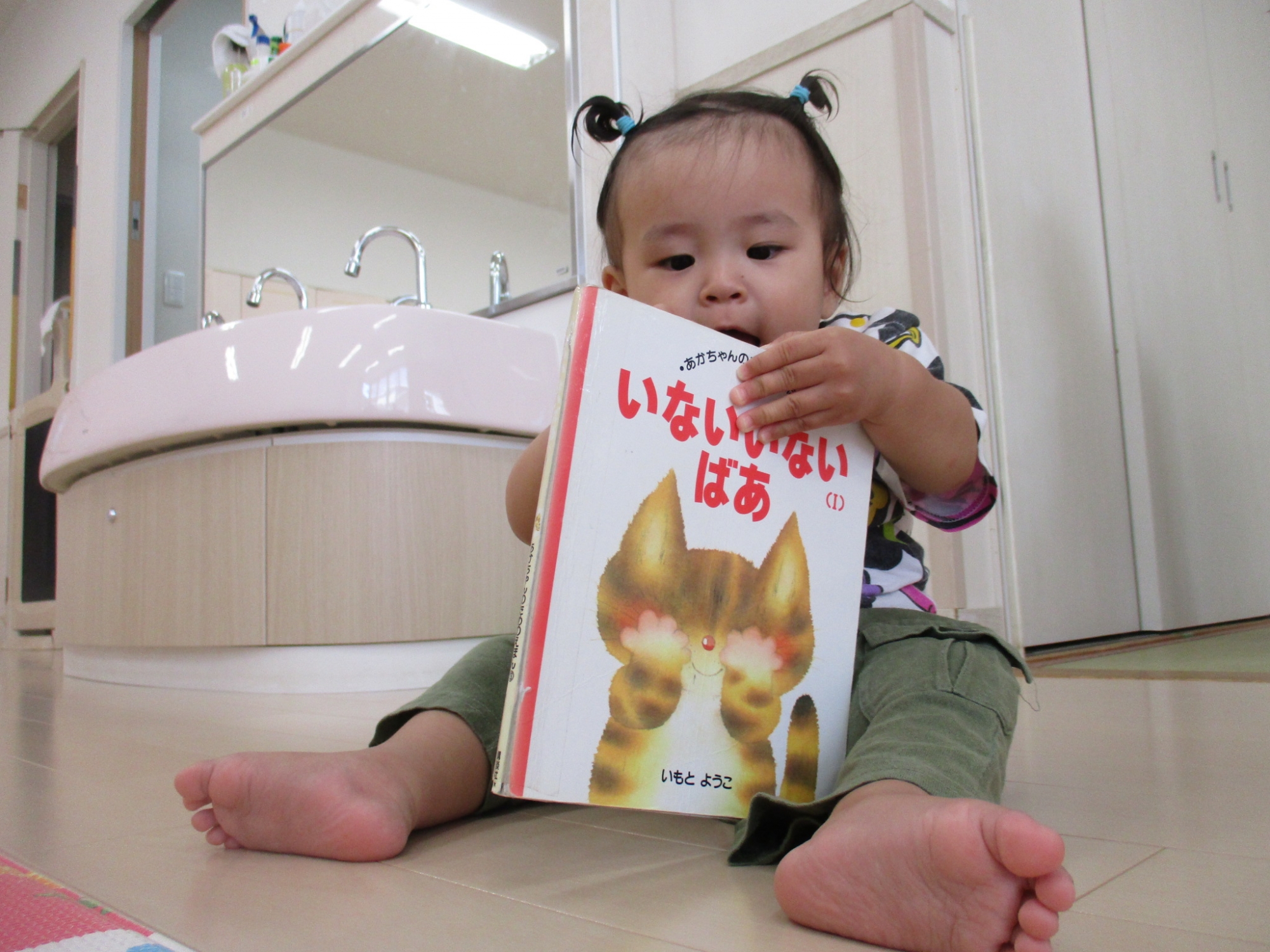 こどもの家・志木中宗岡 たまご組(0歳児クラス)絵本に興味津々(`・ω・´)