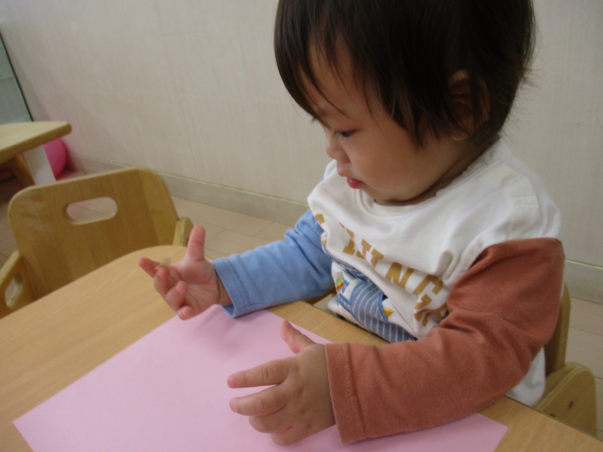 こどもの家志木中宗岡 貼り貼り(*'ω'*)♪ たまご組(0歳児)