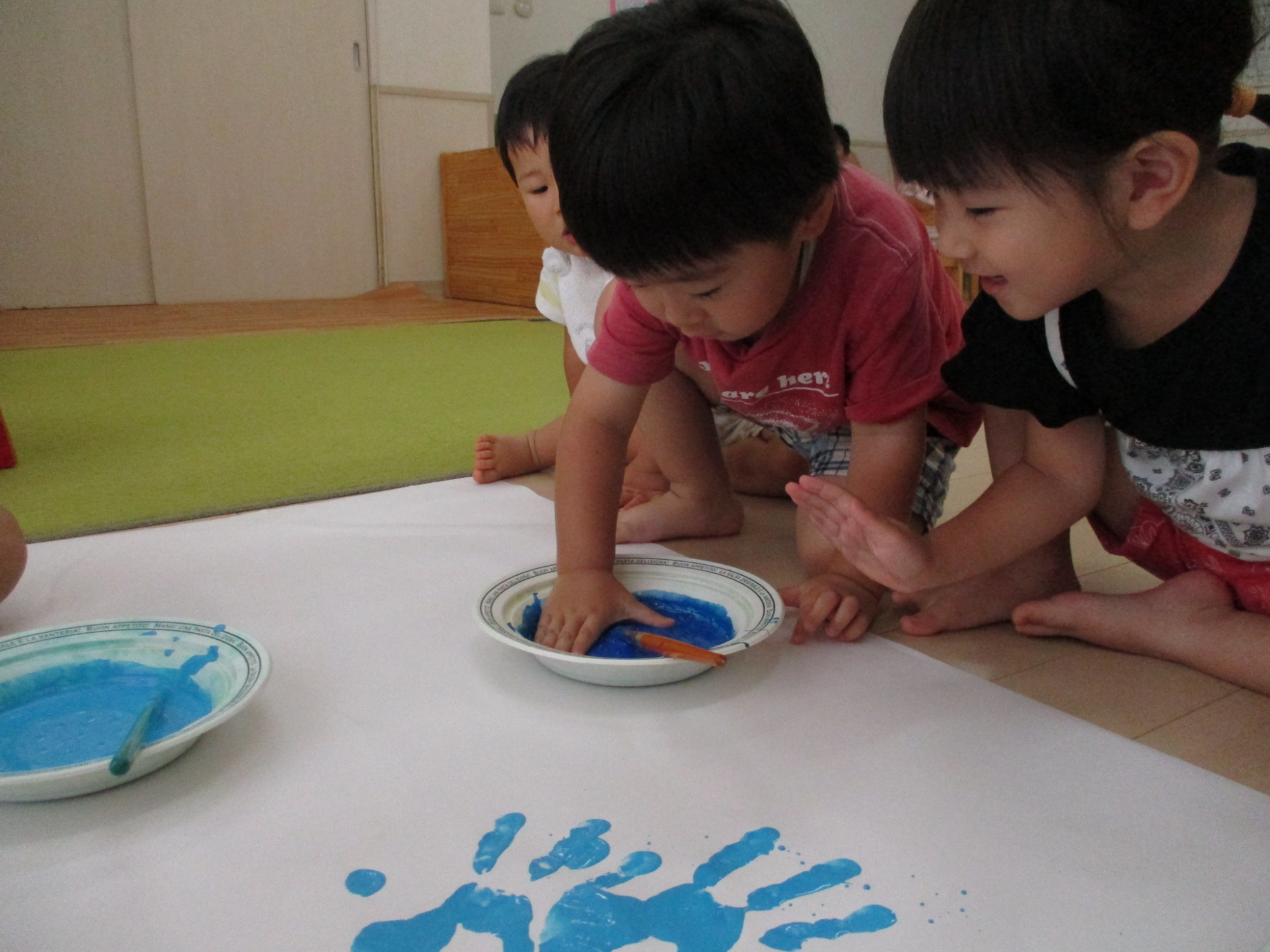 こどもの家・志木中宗岡 らっこ組(2歳児クラス)フィンガーペインティングしたよ