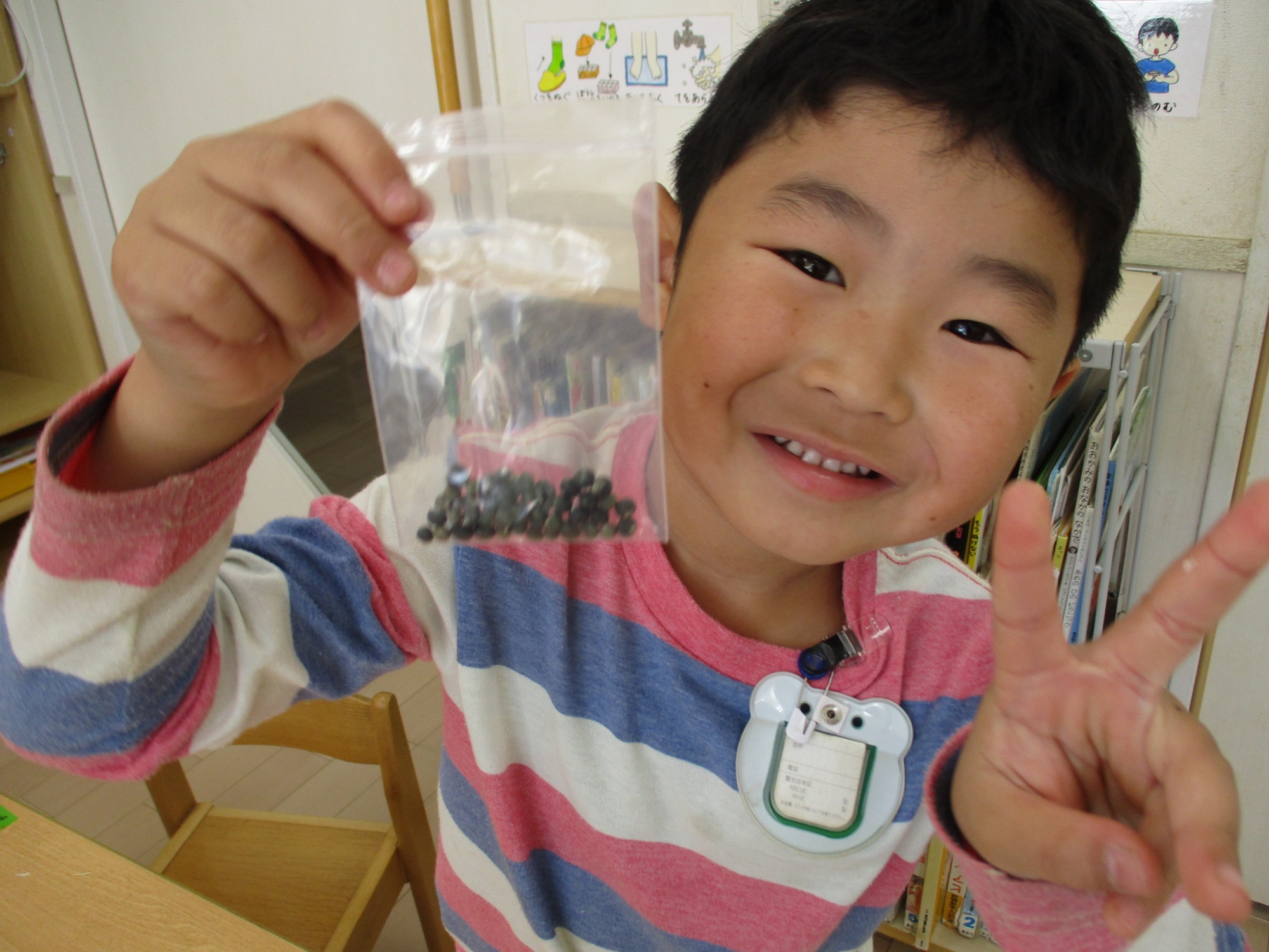 こどもの家・志木中宗岡 オクラの種をとりました♪いるか組(4歳児)