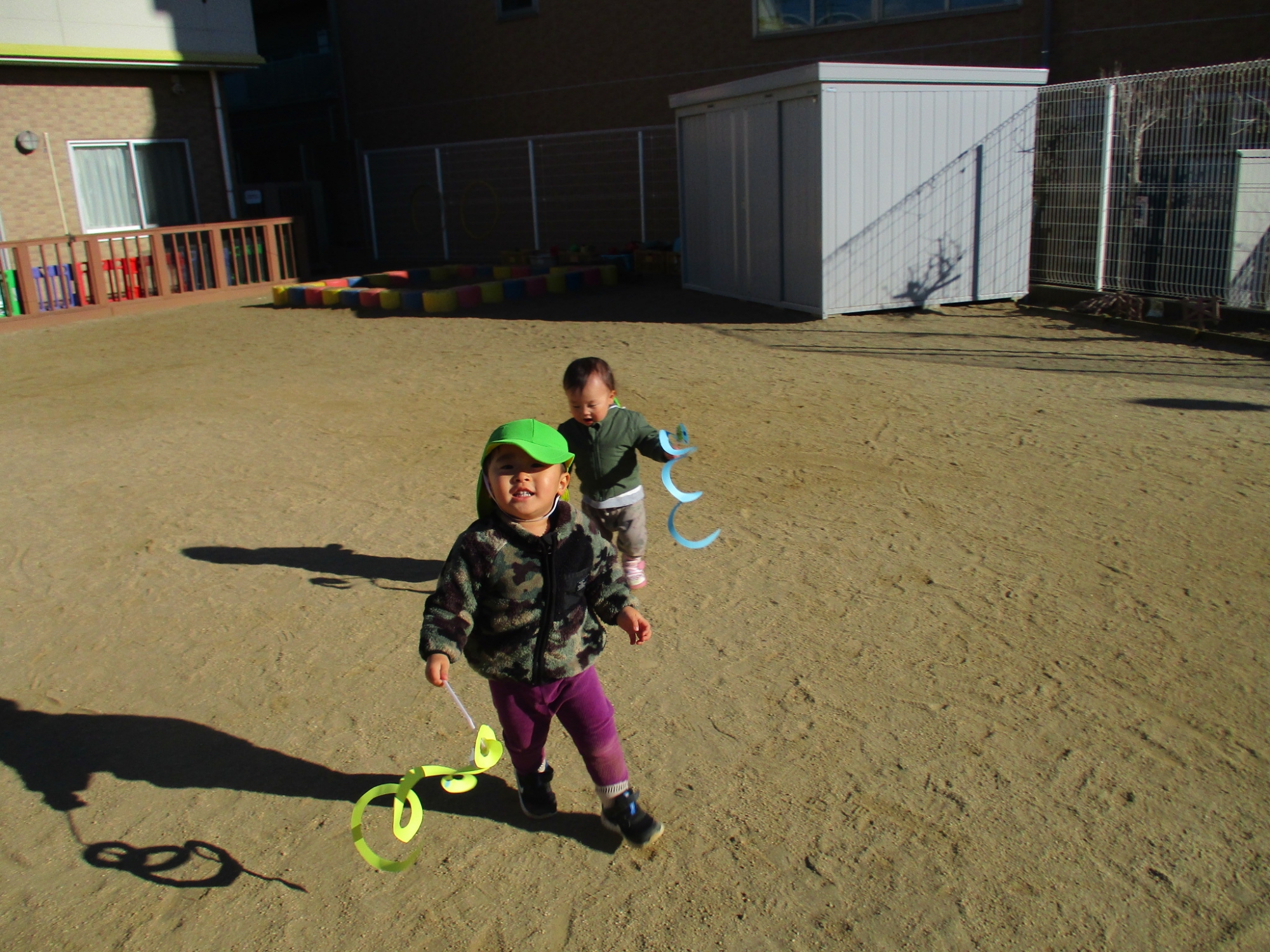 こどもの家・志木中宗岡 お正月遊び 凧揚げ あひる組(1歳児クラス)