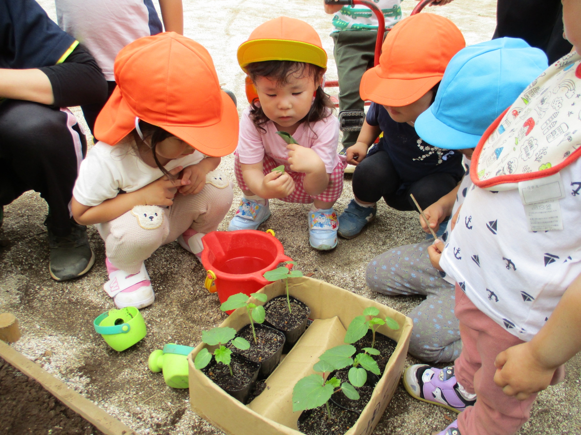 子どもの家・志木中宗岡 おくらの苗を植えました(^^♪ らっこ組(2歳児)