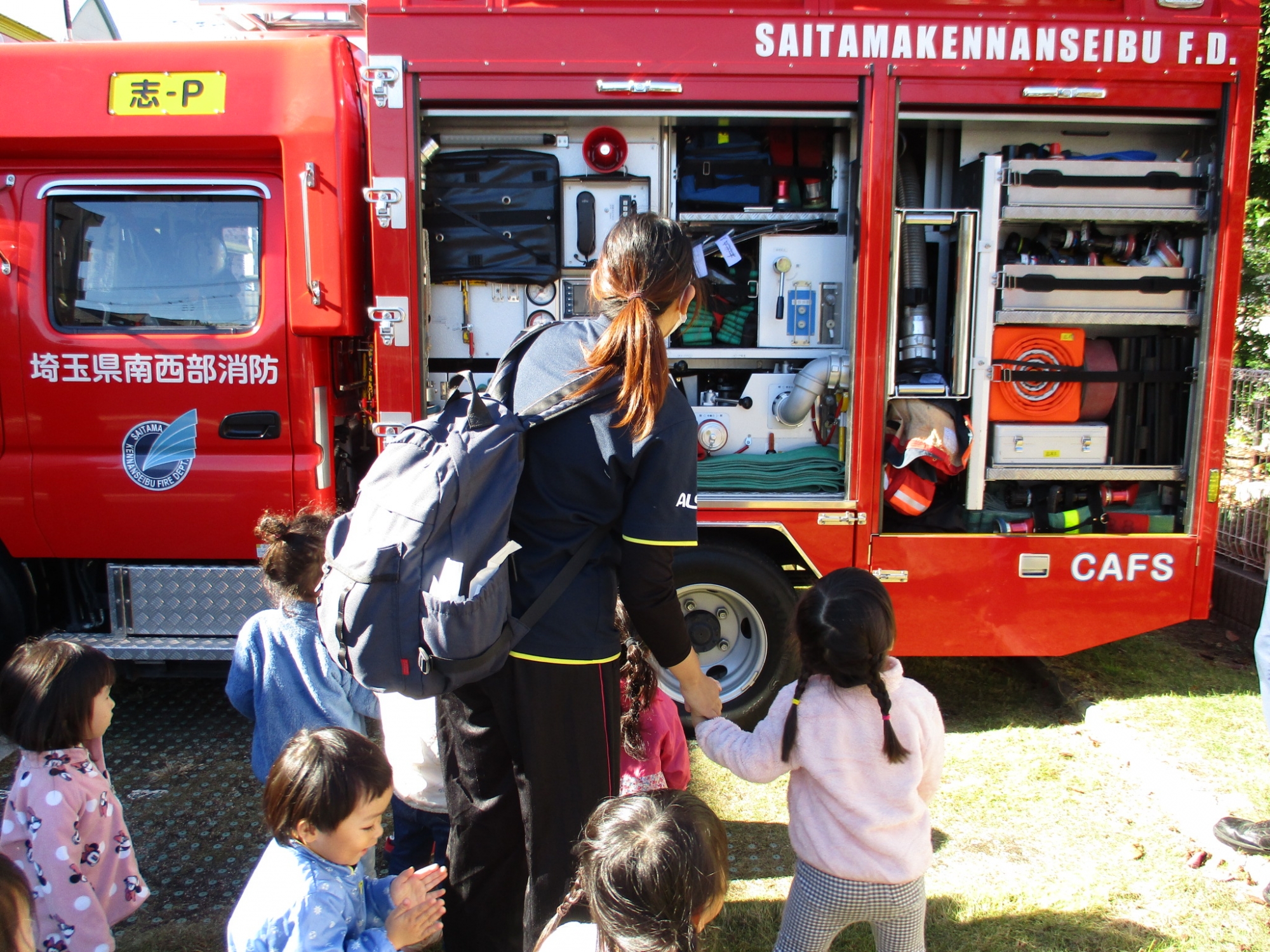 こどもの家・志木中宗岡 消防訓練で消防車に会えたよ♪(幼児クラス)