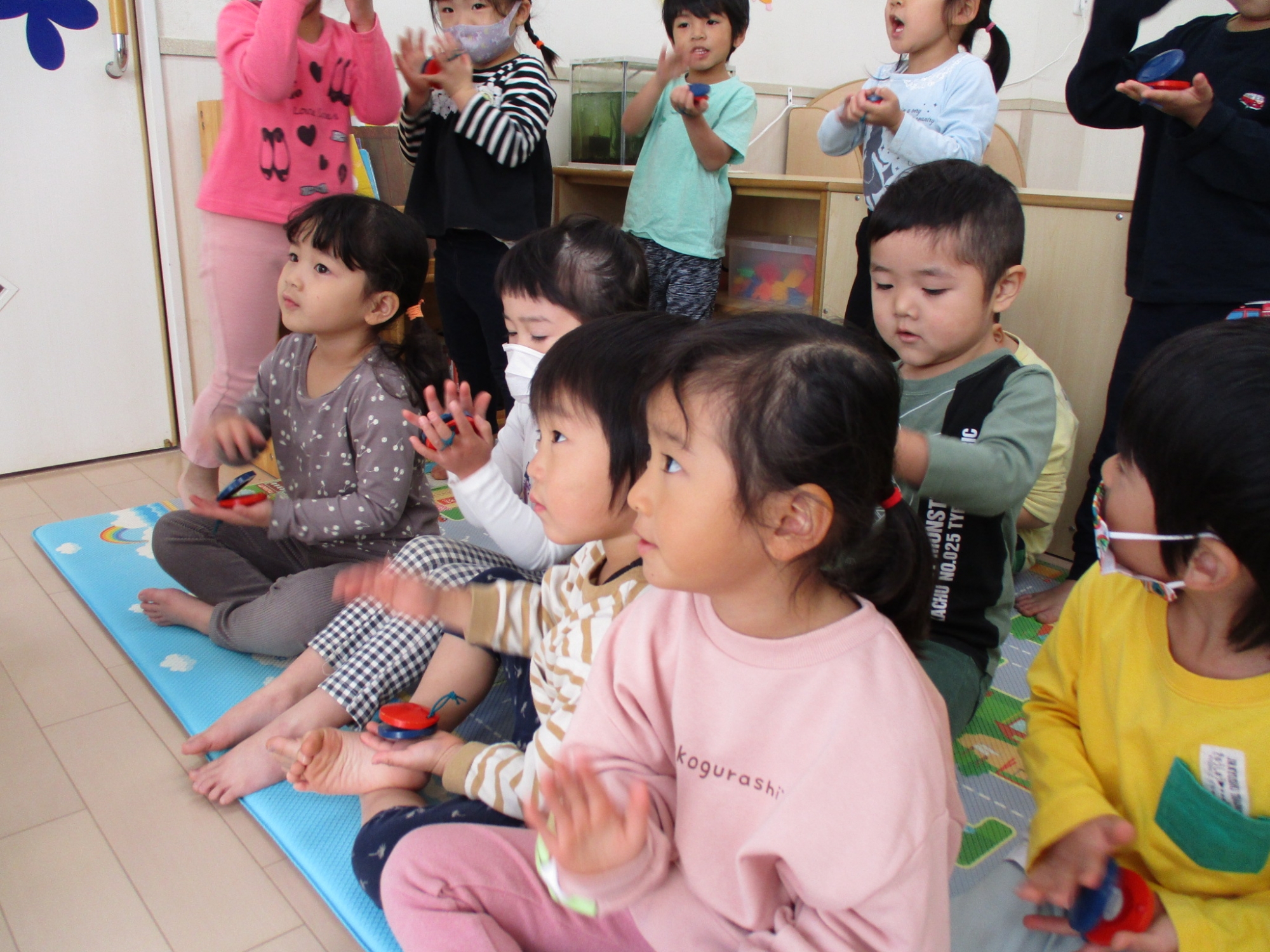 初めてのカスタネット(^^)/♬ さくら組(3歳児クラス)