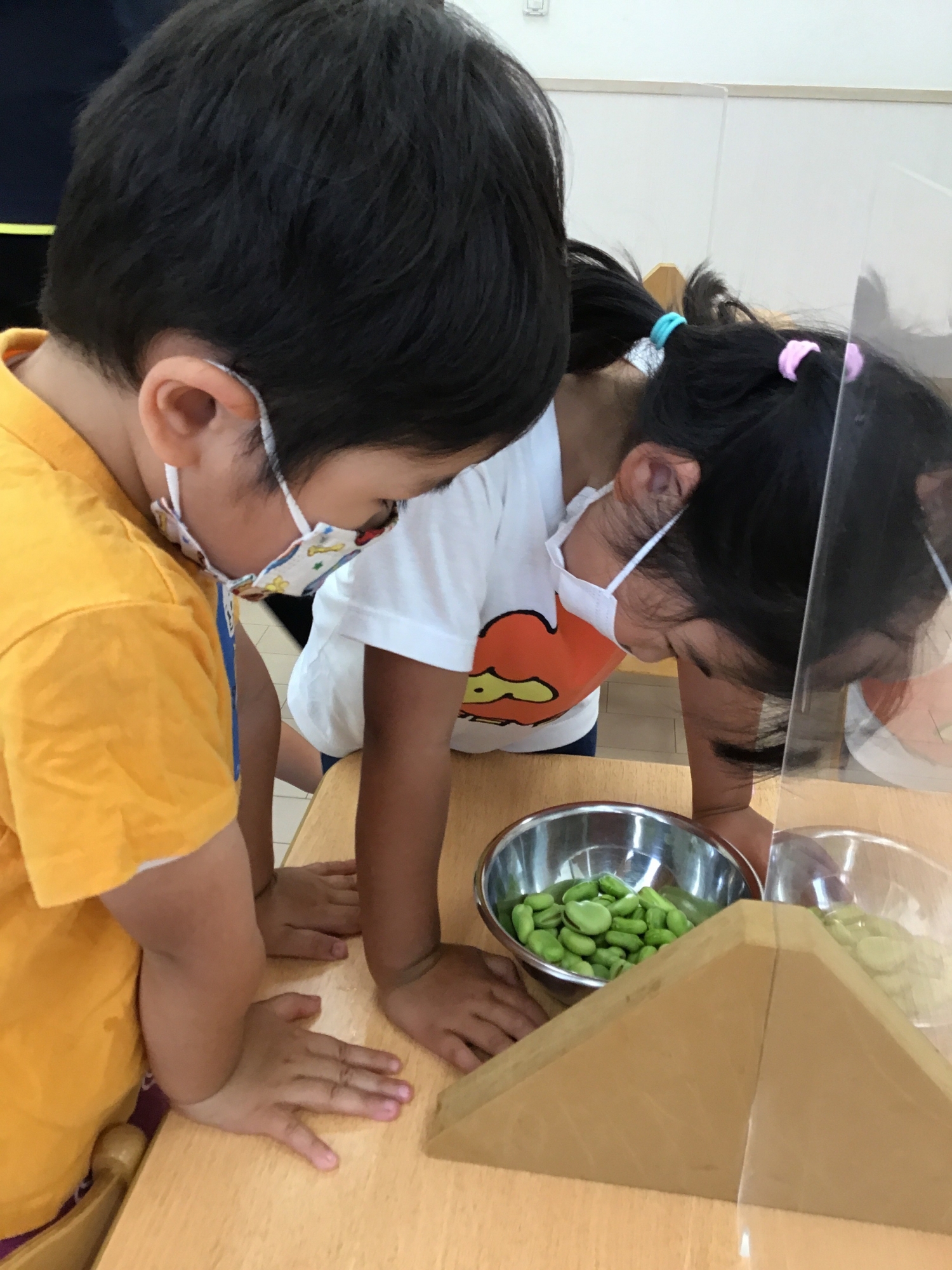 こどもの家・志木中宗岡 絵本給食≪そらまめくんのベッド≫どれどれ・・・