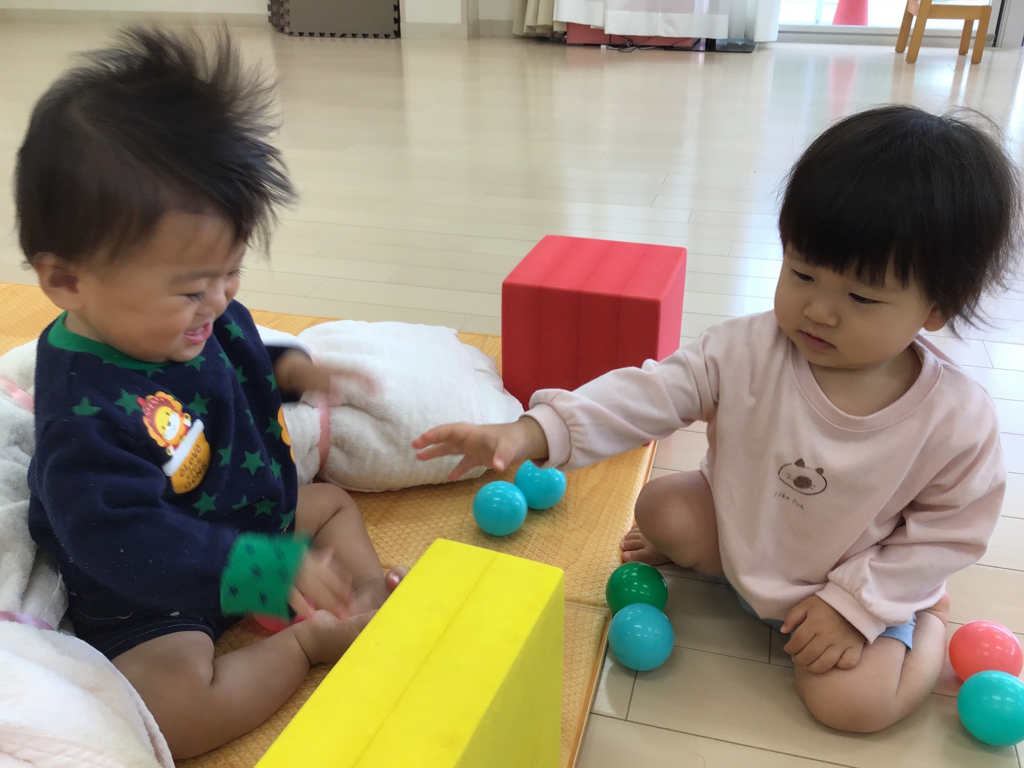 こどもの家・志木中宗岡 つぼみ組さん(0歳)ホールあそびの様子