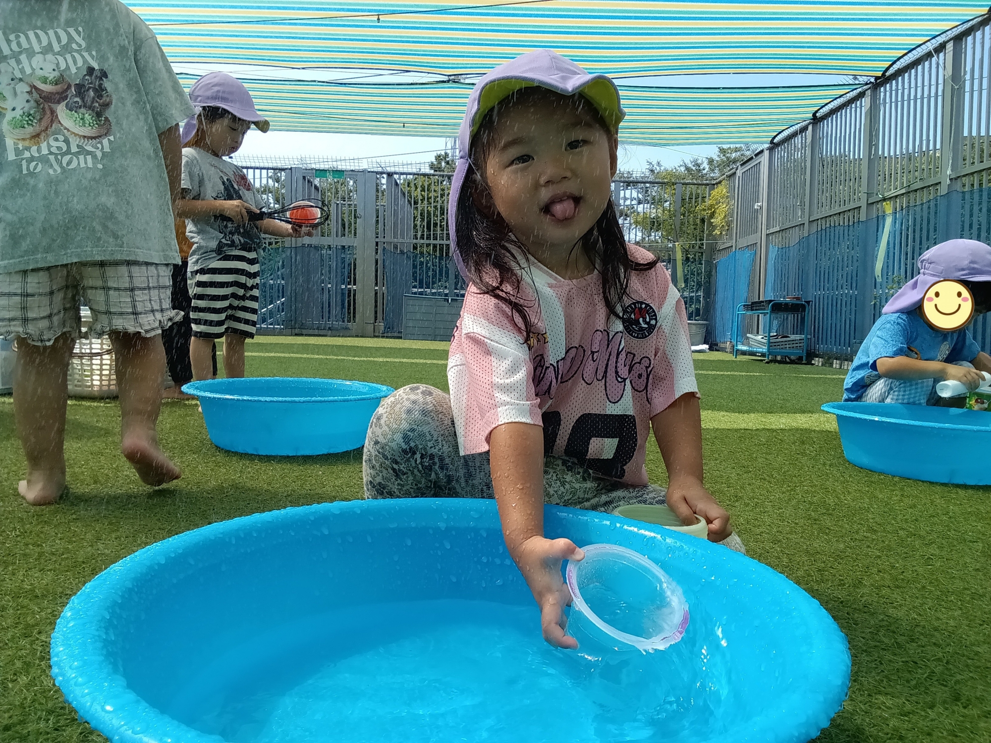 こどもの家・志木中宗岡 水スタンプで遊んだよ☆たまご組(0歳児クラス)