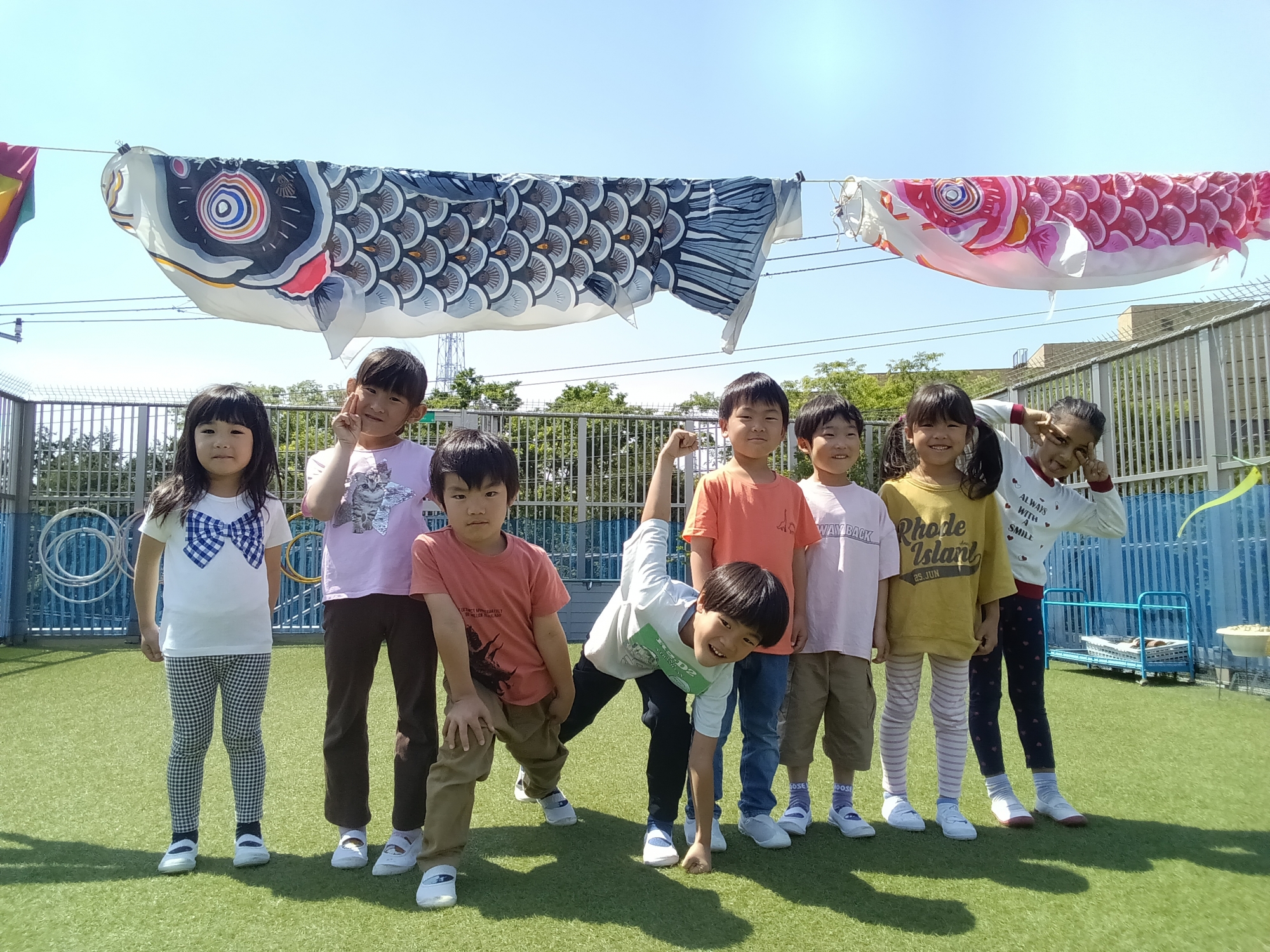 こどもの家・志木中宗岡 こいのぼりを泳がせました☆(ぺんぎん、いるか組)