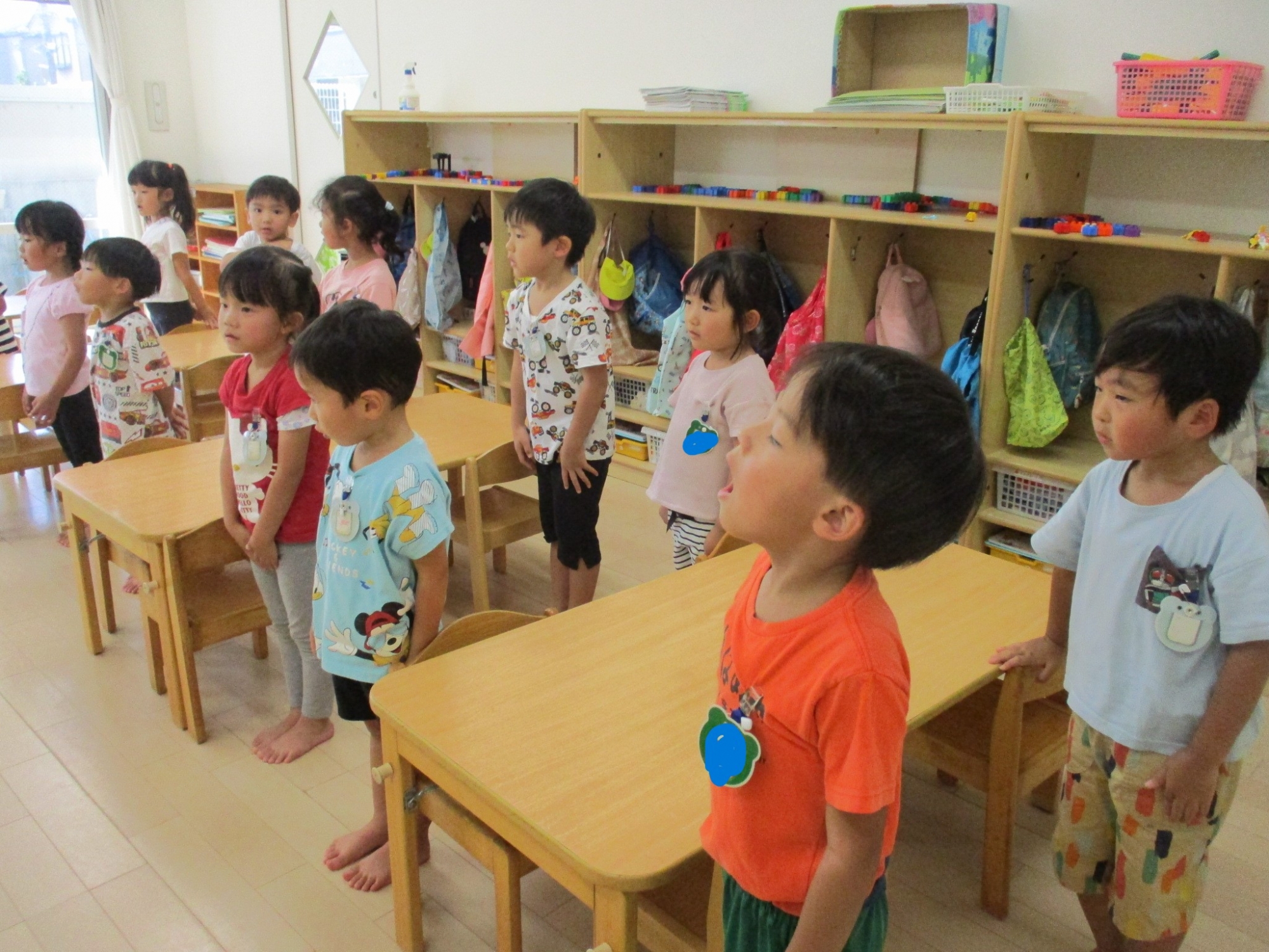 こどもの家・志木中宗岡保育園 朝の会の様子☆いるか組(4歳児)