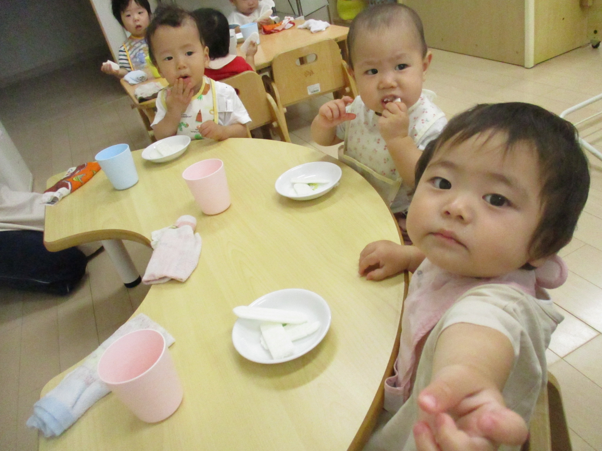 こどもの家・志木中宗岡保育園 たまご組(0歳児)モグモグ練習中(*´ω`*)