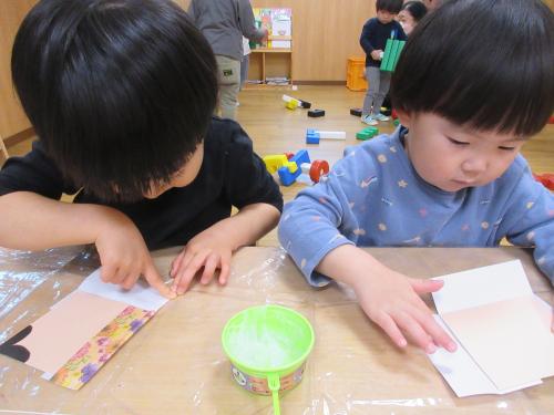 こどもの家・志木中宗岡 タンポでお雛様製作(^^) あひる組(1歳児クラス)