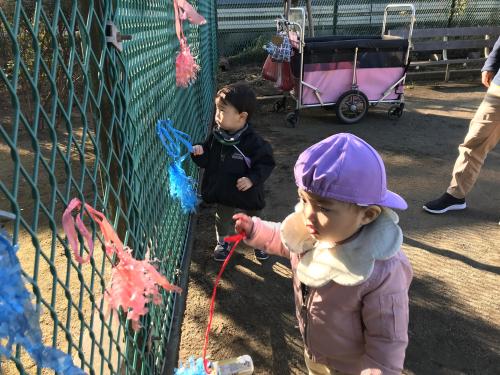 こどもの家・志木中宗岡 お正月遊び 凧揚げ あひる組(1歳児クラス)