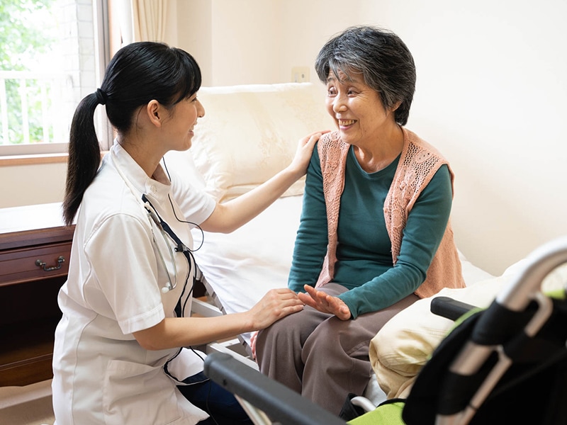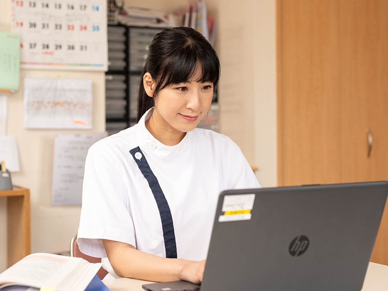 バイタルチェックだけでなく、貼付薬や塗り薬の塗布など、専門的な看護業務を実施します。
