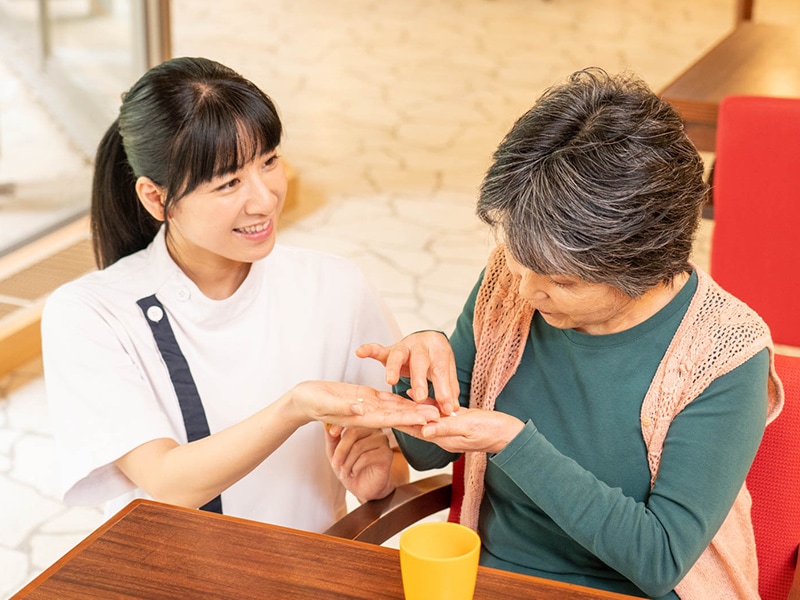 昼食後薬の準備をしていただき、服薬管理をしながら、介護スタッフへ的確な指示をお願いいたします。