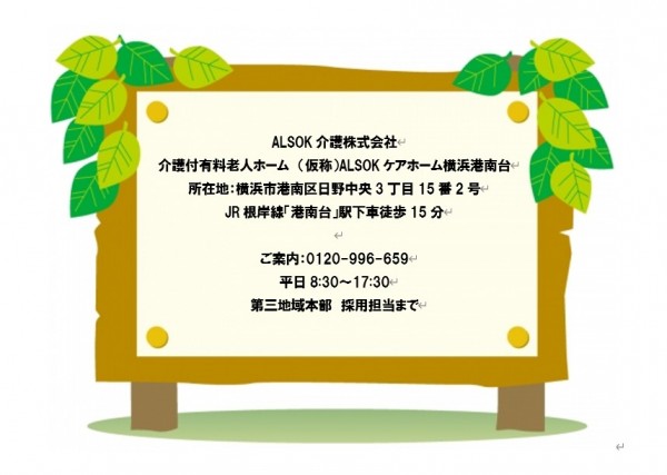 ★2026年2月新築OPEN予定★介護付有料老人ホーム『(仮称)ALSOKケアホーム横浜港南台』★第4弾!