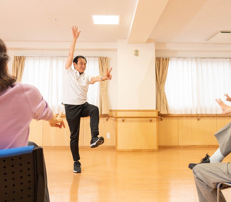施設では食事前に毎日実施しています。皆さん意欲的に運動に参加しエネルギーを消費しているので、食事の摂取量が増えました。