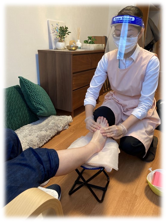 リンパドレナージュであることや、認知症ケアにもなること、足のむくみや冷えの軽減、嚥下困難を予防すること等々、セラピーの良さをお伝えし、『これはいいサービスですね!!』と太鼓判をいただきました。