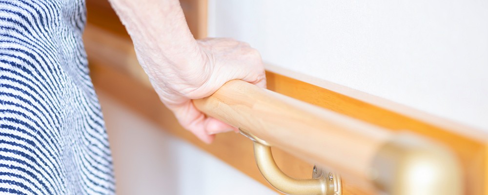 手すりを廊下、トイレ、浴室、玄関などに設置し、転倒を予防します。
